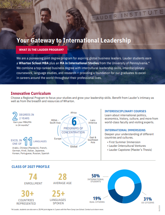 Thank you for your interest in the Lauder Institute Master’s of International Studies Joint-Degree Program!